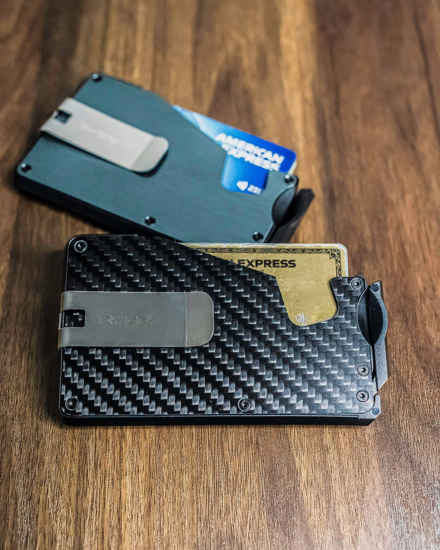 Premium design and construction, Each wallet is machined from a solid sheet of aluminum or carbon fiber and finished with a UV coating for durability performance.